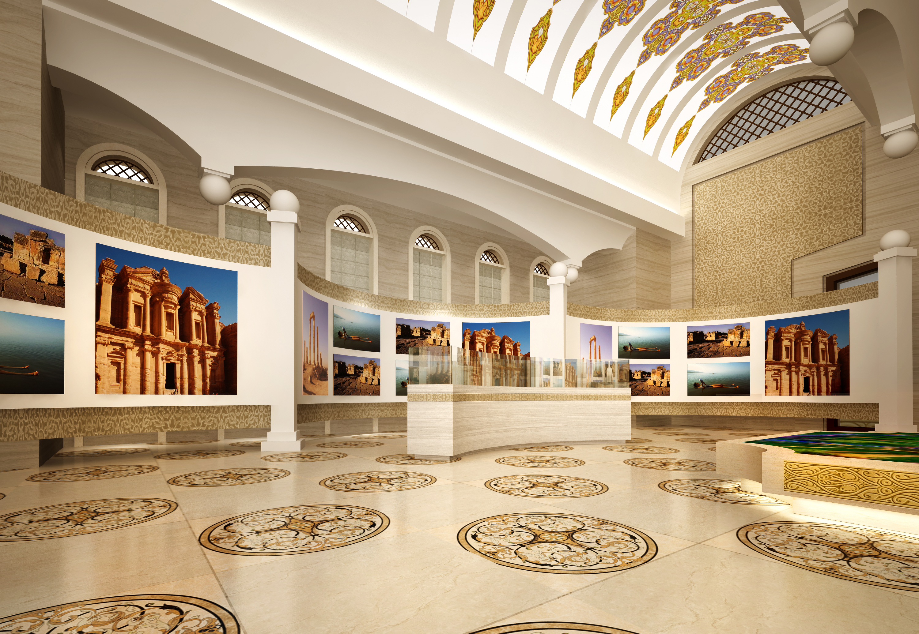 2015年的中阿博覽會,為了讓市民更多的了解該屆主賓國約旦的風土人情,寧夏籌備建設了約旦國家館,約旦館位于銀川市綠博園約旦展園,面積1081平米,我公司接到任務后,離中阿博覽會開幕只有40天時間,公司上下深感責任重大,為了確保按時完工,公司組織了銀川分公司和北京分公司的精英團隊,分頭工作,遍訪社科院西亞非專家,收集第一手資料,只用了不到20天就完成了資料收集整理工作及效果圖設計工作,并通過了專家組審核,為了確保施工順利,在現(xiàn)場不具備施工作業(yè)條件的情況下,公司領導果斷決策,調整施工方案,在保證時間的前提下啟用了上海的施工團隊,部分項目上海定制,本地化組裝,最終上下一心,按時完成了整個項目的施工,為中阿博覽會增添了一道閃亮的風景線,獲得了寧夏自治區(qū)黨委書記李建華、時任政府主席劉慧、約旦駐中國大使等領導的認同。