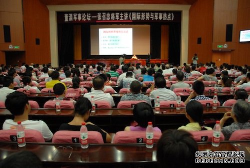 據(jù)了解,張召忠將軍在中央電視臺做軍事評論已有20年,到寧夏講座是第三次。他此次講座的題目是《國際形勢與軍事熱點》,圍繞大家關心的熱點問題,重點剖析南海局勢。在近3個小時的講座中,張召忠將軍旁征博引、深入淺出,通過大量形象生動的漫畫,精辟的闡述與解析,讓來賓對我國國防新形勢有了更為深刻的認識。