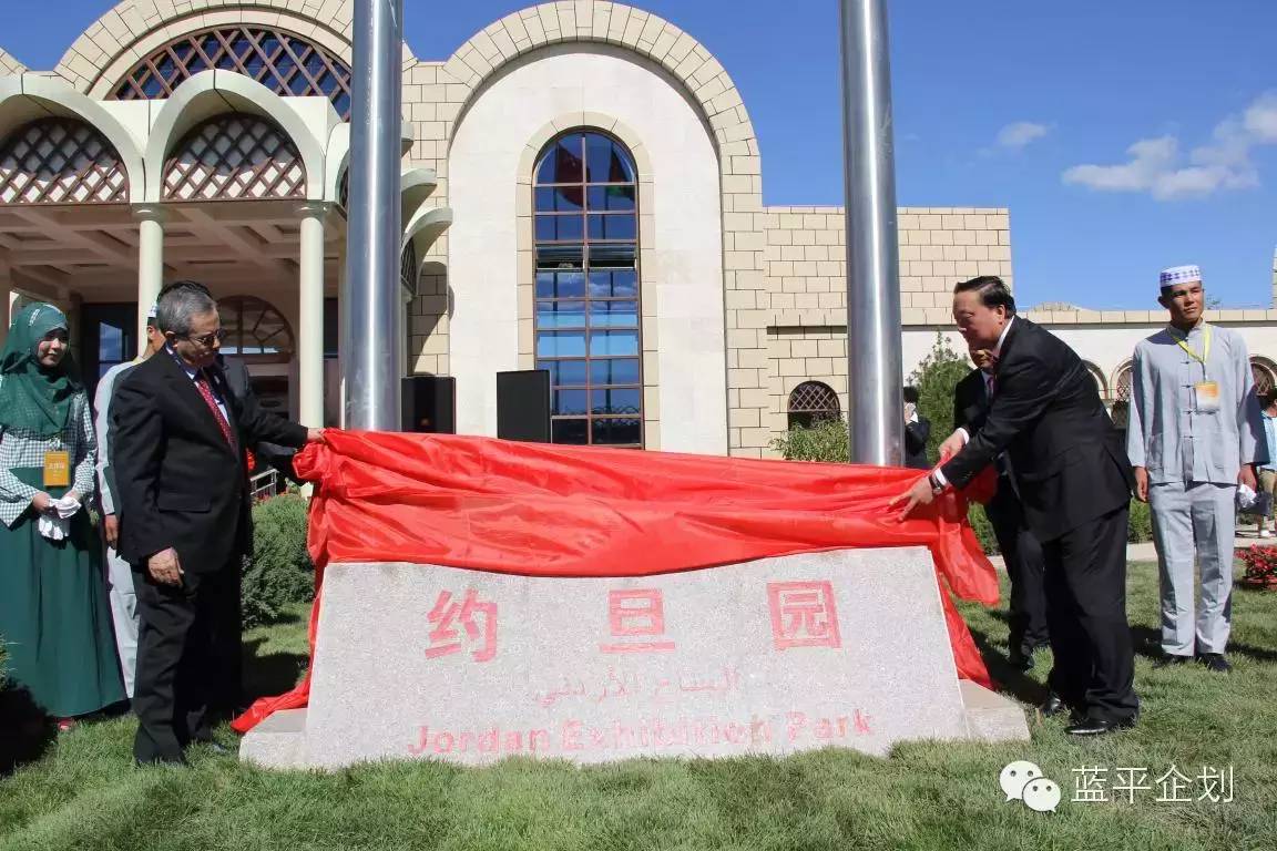 約旦國(guó)大使葉海亞·卡拉萊與寧夏回族自治區(qū)黨委常委、銀川市委書(shū)記徐廣國(guó)為約旦館揭幕。