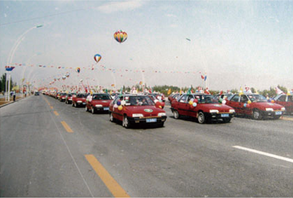 舉行北京路竣工通車慶典,天氣特別明媚,陽光分外燦爛。有數(shù)不清的市民擁向慶典主會場——新建的西夏廣場。慶典活動非常隆重、熱烈,鼓樂喧天、禮炮齊鳴。出席慶典的人們分乘披紅掛彩的公交車、中巴車,與慶典花車、摩托車、出租車、小轎車等組成的300多輛的機動車方隊,無比喜悅與自豪地游覽50里長的北京路。北京路兩旁站滿了各界群眾,他們載歌載舞,喜不自禁。