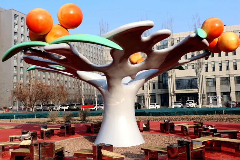 “沙棗樹精神”雕塑是由寧夏大學(xué)企業(yè)家校友會(huì)發(fā)起,甘肅、北京、河南、四川、上海、江蘇、山東校友會(huì)參與,為慶祝寧夏大學(xué)建校65周年而共同捐建的。雕塑結(jié)構(gòu)簡潔,線條流暢,底座周長19.58米,寓意寧夏大學(xué)于1958年創(chuàng)立,扎下發(fā)展的根基;樹干高2.11米,寓意寧夏大學(xué)乘國家“211工程”重點(diǎn)建設(shè)之風(fēng)實(shí)現(xiàn)跨越發(fā)展;樹冠直徑9.15米,寓意9月15日為建校紀(jì)念日;4條樹枝繁茂生長,8片