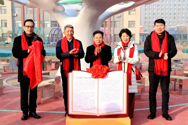 儀式上,李星為校友代表頒發(fā)捐贈(zèng)證書,并與校友代表共同為“沙棗樹精神”雕塑揭幕。